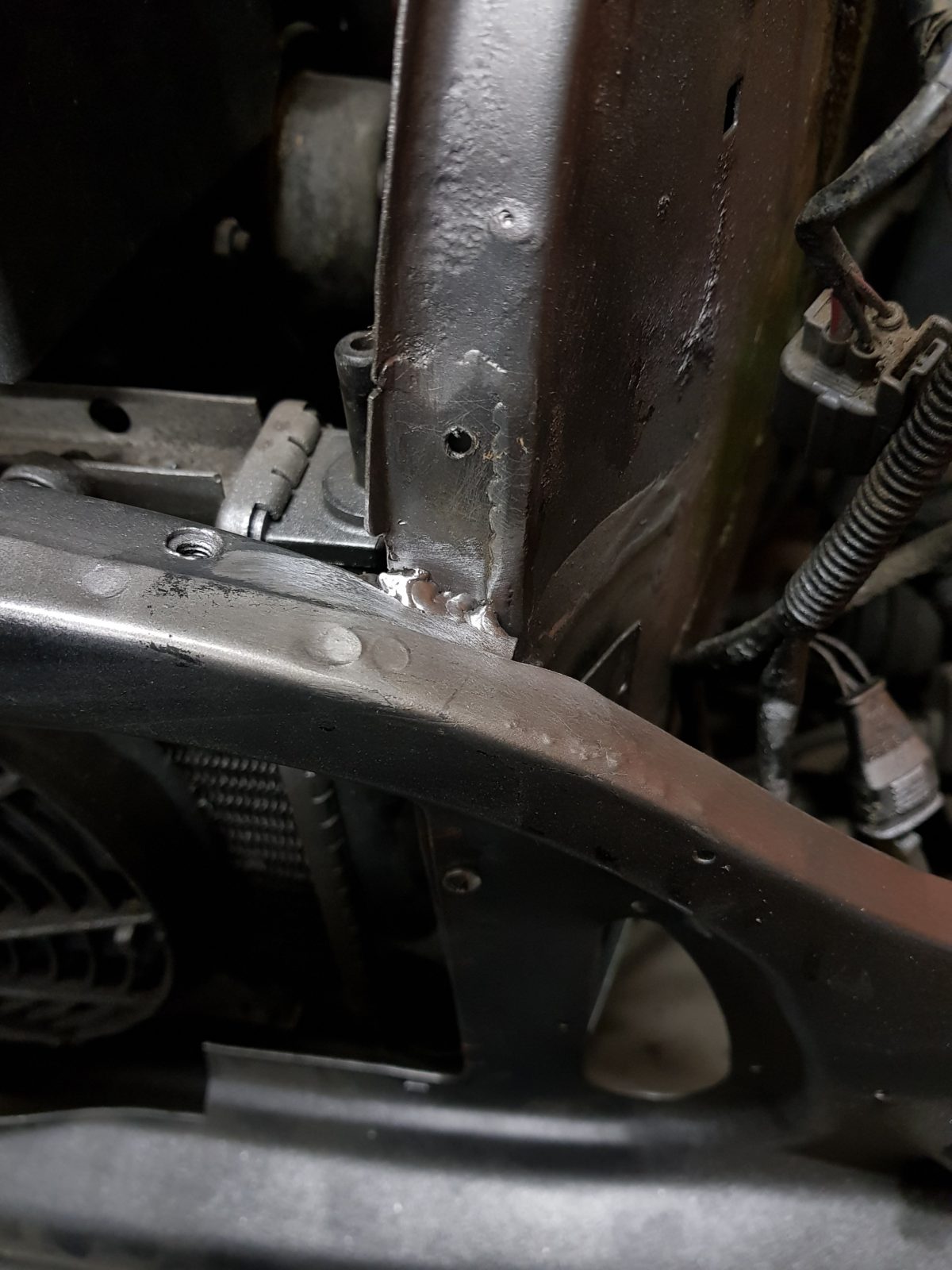 First I wanted to only remove the paint on the places that are spot welded. But I was not convinced that the black paint would prevent corrosion so I removed it all.
